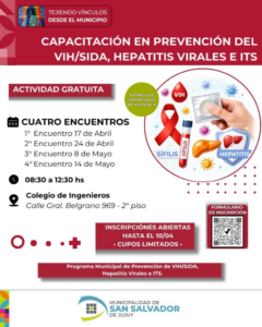 Invitan a la capacitación gratuita en prevención del VIH, Hepatitis Virales e ITS