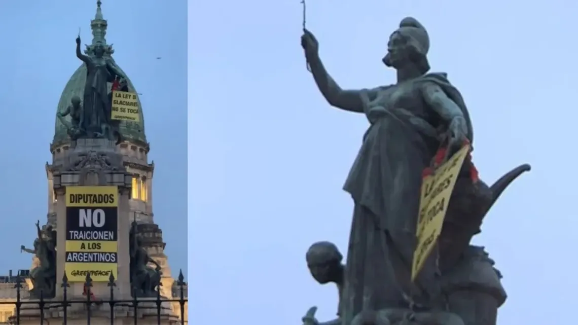 Ley de Glaciares: activistas de Greenpeace se treparon al Congreso y terminaron detenidos