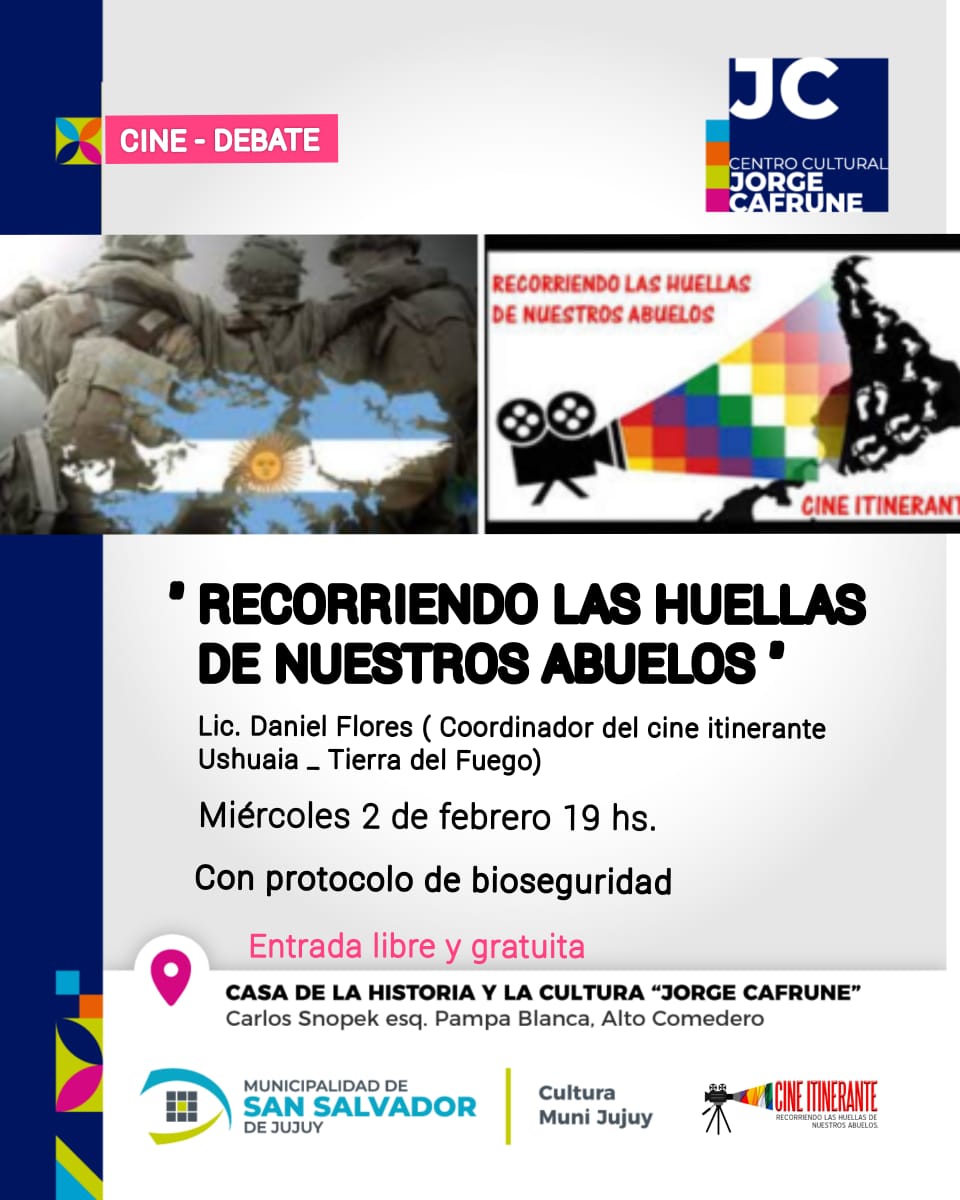 Aperturando el Ciclo de actividades en la Casa de la Cultura Jorge Cafrune, de Alto Comedero Jujuy. El Cine Itinerante «Recorriendo las Huellas de Nuestros Abuelos» junto a Palca Producciones, presenta «LOS VILCA CONDORI» una historia unica de tres hermanos originarios que participaron en la guerra.