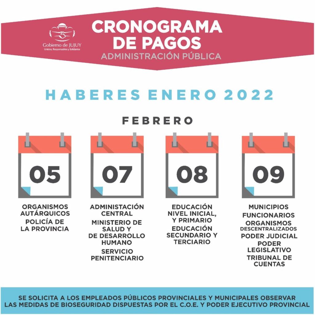 Tesorería de la Provincia dio a conocer el cronograma de pagos correspondiente al mes de Enero 2022.