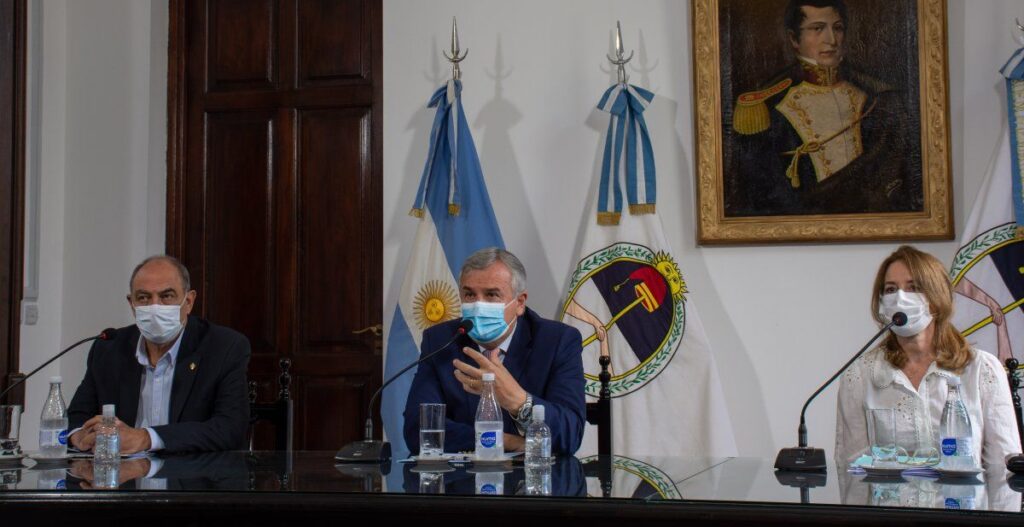 El gobernador Gerardo Morales, la ministra de Educación María Teresa Bovi y su par de Salud Antonio Buljubasich dieron a conocer el protocolo establecido para la vuelta a las clases presenciales. Asistencia cuidada, vacunación, uso de barbijo, ventilación, higiene y distancia, los ejes.