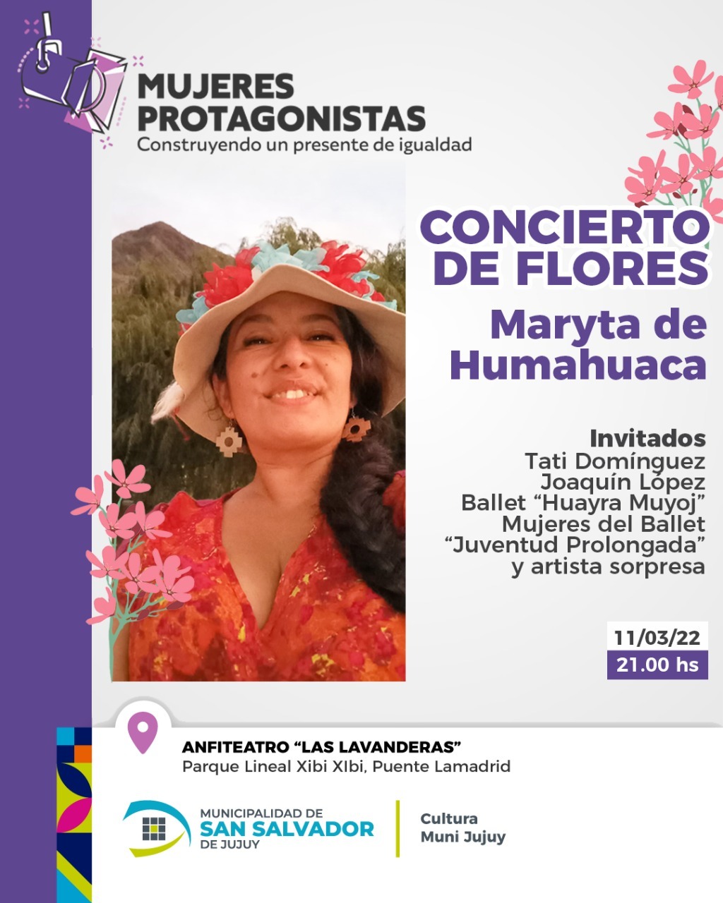 Al respecto, Luciano Córdoba, Secretario de Cultura y Turismo indicó: “en el Mes de la Mujer estamos con un proyecto de que se denomina ‘Mujeres Protagonistas’, presentando a una de las grandes protagonistas de la cultura y la música jujeña como es Maryta de Humahuaca, este viernes estará brindando un espectáculo- concierto muy especial en este cierre de carnaval dejando todo un mensaje y, fundamentalmente, estará acompañada de otros artistas, ballet de danzas.