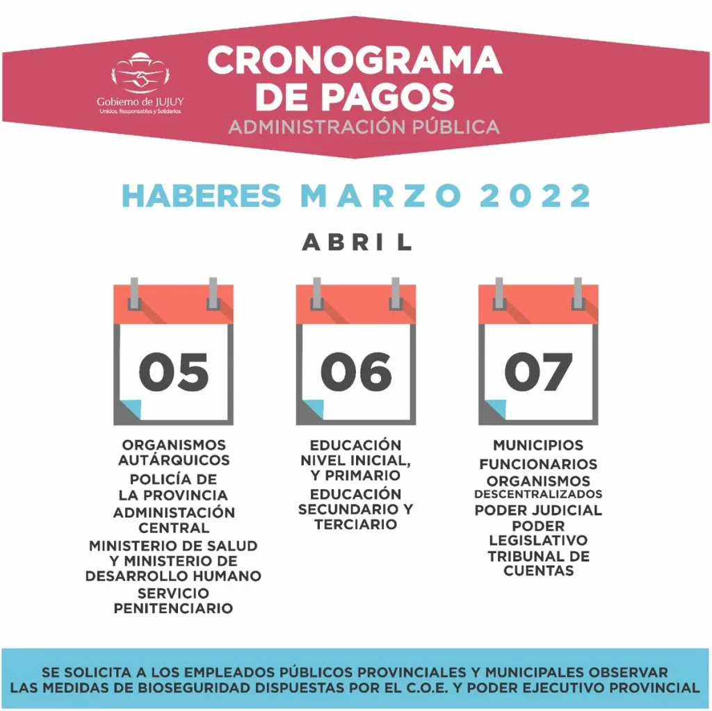 Tesorería de la Provincia dio a conocer el cronograma de pagos correspondiente al mes de Marzo 2022.