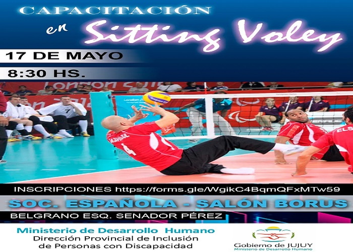 El Ministerio de Desarrollo Humano, a través de la Dirección Provincial de Inclusión de Personas con Discapacidad, invita a la » Capacitación en Sitting Voley» a cargo de la Coordinación Provincial de Deporte Adaptado, se desarrollará el día 17 de Mayo a 8:30 Hs. en el salón “Borus” de la Sociedad Española y esta dirigida a Profesores de Educación Física, Entrenadores, alumnos de educación física y público interesado.