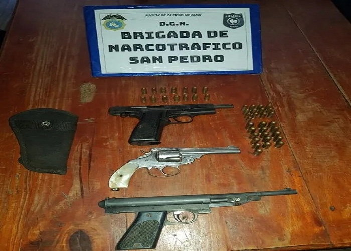 La Brigada de Narcotráfico de San Pedro en cinco allanamientos detuvo a cuatro personas y secuestro droga y armas..