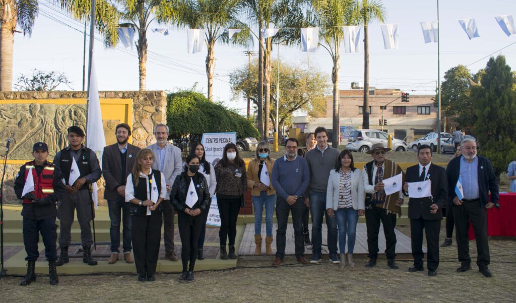 El presidente de la institución, Lisandro Aguiar, junto a los concejales José Rodríguez Bárcena, Leandro Giubergia, Patricia Moya y María Galán, compartieron el acto patrio junto a funcionarios municipales, el diputado provincial Adriano Morone, instituciones del barrio como el Servicio Penitenciario y Cuerpo de Bomberos, entre otras, representes del Centro Vecinal del barrio Gorriti, Banda de Música 19 de Abril y vecinos.