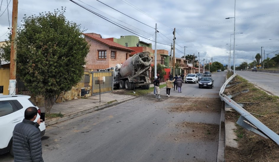 Por causas que se intentan establecer, un camión hormigonero descarriló cuando circulaba por la colectora, pisó el guardarraíl y terminó chocando contra una casa de Av. Balvín.