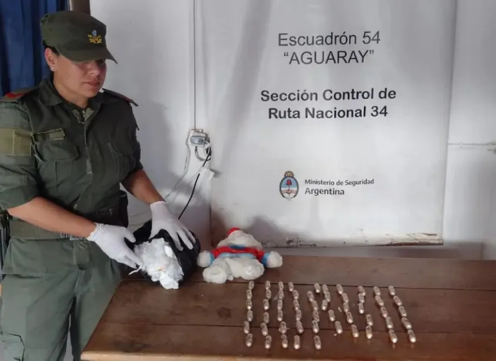 Un total de 55 cápsulas de cocaína fueron halladas ocultas en un juguete de peluche que era trasladado en el interior de un ómnibus que circulaba por la provincia de Salta, el cual provenía de Bolivia y tenía como destino la provincia de Buenos Aires, informaron este martes fuentes de Gendarmería Nacional (GN), a cargo del operativo.