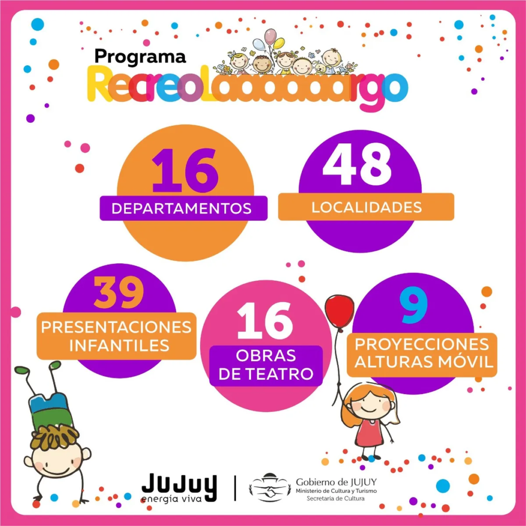 Tras concluir la programación, la Secretaría de Cultura confirmó que está todo definido para que desde el 18 al 29 del presente mes se desarrolle el Programa “Recreo Largo” que estará presente en departamentos y localidades de Jujuy, llevando una variada grilla artística infantil.