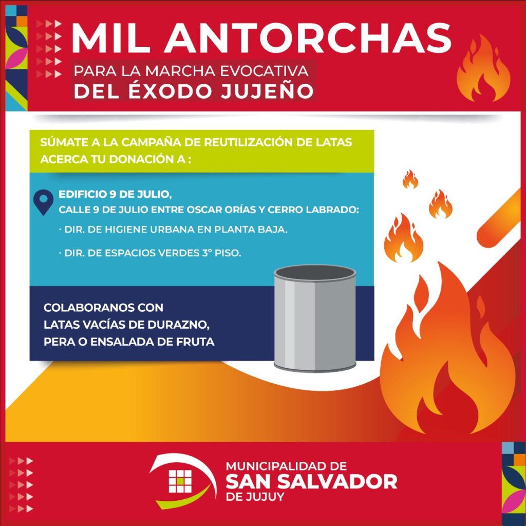 Se aproxima un nuevo aniversario del Éxodo Jujeño, por ello la Secretaría de Servicios Públicos, a través de la Dirección de Espacios Verdes y la Dirección de Higiene Urbana, inicia una campaña de recolección de latas, para confeccionar mil antorchas, con el objetivo de que le den el marco apropiado a la tradicional marcha evocativa.