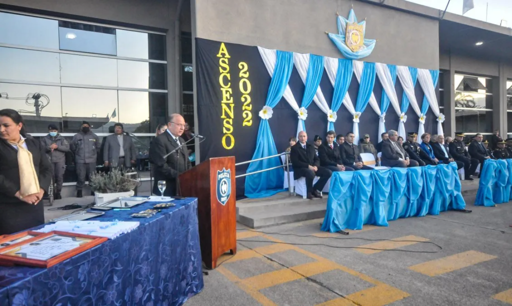 En las instalaciones de la Central de Policía, se realizó el acto de ascenso al grado inmediato superior de 2139 efectivos policiales que gracias al Decreto N° 5729 emitido por el Poder Ejecutivo Provincial. El ministro de Seguridad Luis Martin agradeció al Gobernador Morales la decisión política de promover a los hombres y mujeres de la institución policial en virtud del trabajo, esfuerzo y dedicación demostrados.
