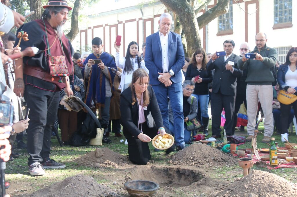 Los diferentes representantes de los pueblos originarios que se hicieron presentes para acompañar la inauguración del nuevo edificio del INAI realizaron al aire libre –y en un espacio que será de aquí en adelante un sitio sagrado para las comunidades- una ceremonia de Ofrendas a la Pachamama, celebración que se lleva adelante en esta fecha. Más de doscientas personas participaron activamente del emotivo acto, al tiempo que realizaron agradecimientos a la Madre Tierra con el objetivo de que se intensifique la unión entre los pueblos y prevalezca el espíritu de hermandad, orientado a la ampliación y vigencia plena de sus derechos.