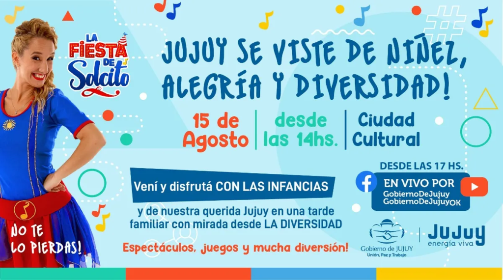 El Gobierno de la Provincia invita este lunes 15, con entrada libre y gratuita, desde 14 horas, al festival en el marco del mes de la niñez en Ciudad Cultural.