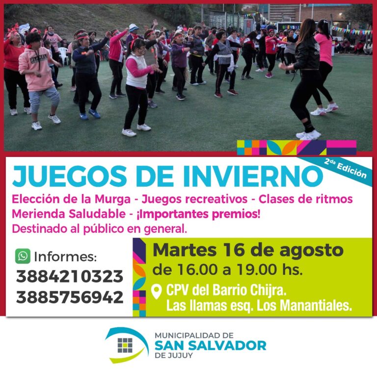 Bajo el lema “Más Zapatillas y Menos Pastillas” la Secretaría de Desarrollo Humano organizó la 2° edición de Juegos de Invierno, en el CPV del barrio Chijra ubicado en calle Llamas esq. Los Manantiales el día martes 16 de agosto de 16 a 19 hs. con entrada libre y gratuita.