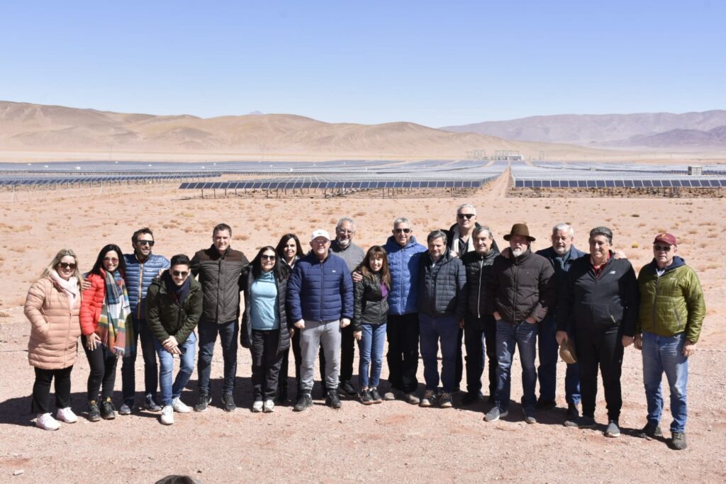 Julio Cobos, Gabriela Lena, Pedro Galimberti, Roxana Reyes, Fernando Carbajal, Manuel Aguirre, Francisco Monti, MArcos Carasso y Jorge Vara visitaron en la jornada de hoy la planta solar de los proyectos Cauchari I, II y III, emplazada en el sur del salar de Olaroz-Cauchari, donde,a 4.020 msnm y en 800 hectáreas, 960 mil paneles fotovoltaicos logra una potencia de 315.79 MWP y evitan generar 780.000 toneladas de CO2 al año.