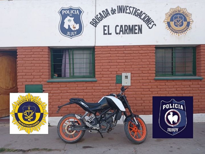 Días atrás, personal policial de la Brigada de Investigaciones de El Carmen, recuperaron una motocicleta de alta gama que había sido robada el pasado 01 de Septiembre en ciudad Perico.