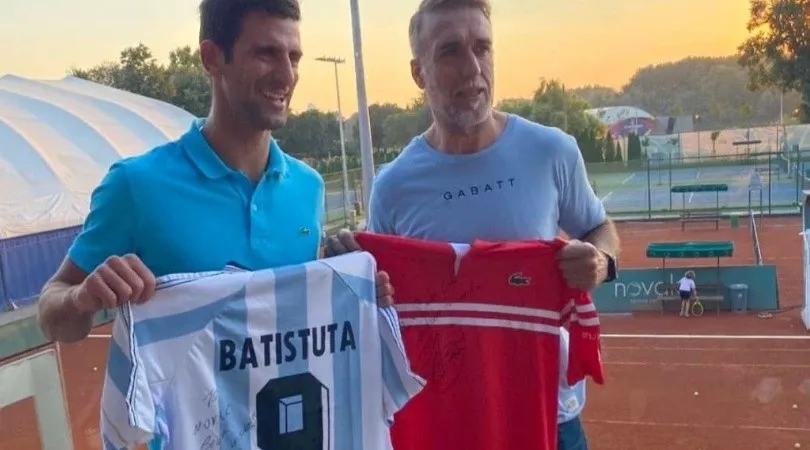 El ex futbolista argentino Gabriel Batistuta mantuvo una reunión este martes con el tenista serbio Novak Djokovic, número 7 del ranking ATP, en Belgrado, y ambos aprovecharo la ocasión para intercambiar camisetas.