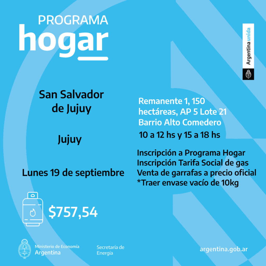 Tras las gestiones realizadas por la diputada nacional Leila Chaher, se llevarán adelante desde el 19 al 23 de septiembre en barrios de San Salvador de Jujuy operativos del Programa «Hogar» de la Secretaría de Energía del Ministerio de Economía de la Nación.