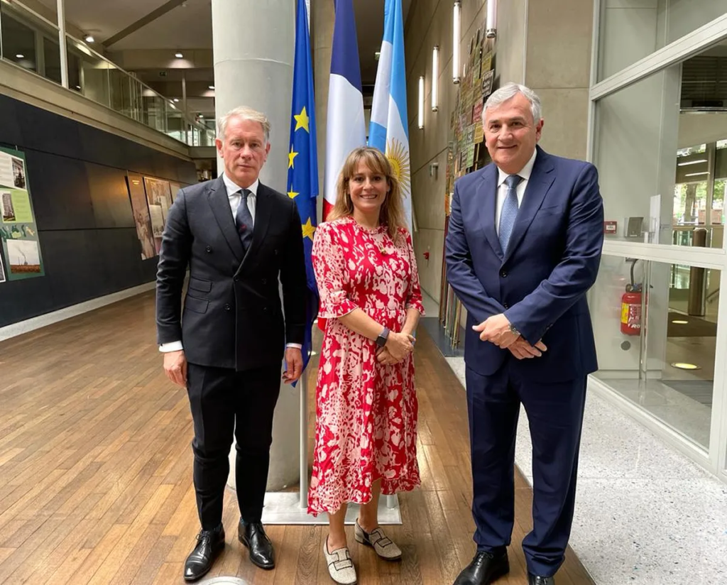 El gobernador fue recibido por el director Ejecutivo de Geografías AFD, Philippe Orliange; la directora del Departamento de América Latina AFD, Marie-Pierre Bourzai; y Julián García, responsable del Desk Argentina de AFD. De las conversaciones también participaron el embajador de la República Argentina en Francia, Leonardo Daniel Costantino; Silvina Murphy, jefa de la Sección Política de la Embajada; y Demian Dobry, secretario de la Embajada; entre otros funcionarios.