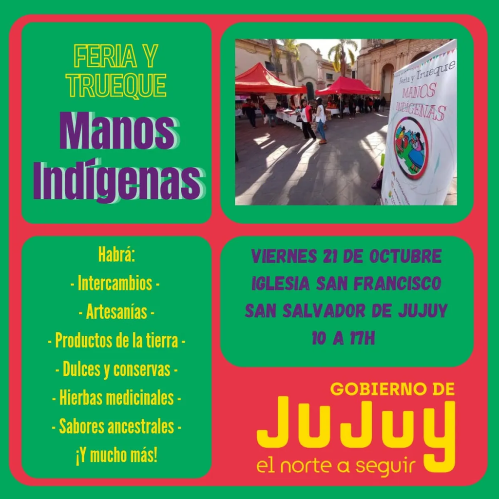 El ministerio de Desarrollo Humano, a través de la Secretaria de Pueblos Indígenas, realizará la «Feria y Trueque Manos Indígenas» el día viernes 21 de octubre desde las 10:00 horas en el atrio de la Iglesia San Francisco de San Salvador de Jujuy.