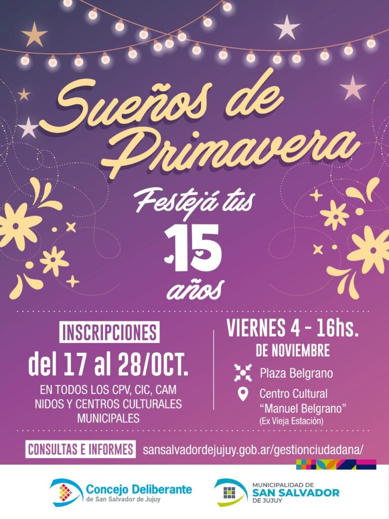 Se recuerda a todas las jovencitas interesadas que hasta este viernes 28 de octubre estarán abiertas las inscripciones para aquellas chicas que cumplan o hayan cumplido los 15 años desde el 1de noviembre del 2021 y el 31 de octubre de 2022. Como todos los años la fiesta se desarrolla en el Centro Cultural Manuel Belgrano, este año se realizará el viernes 4 de noviembre a partir de las 17 hs. Previo a ello la concentración de las chicas se desarrollará en Plaza Belgrano.