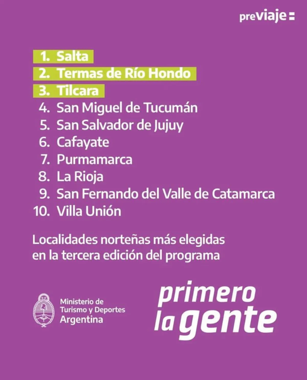 Con la plena vigencia del programa PreViaje 3, Jujuy vuelve a ubicarse en el Top Ten de los destinos más elegidos por los turistas con las ciudades de Tilcara, San Salvador de Jujuy, y la localidad de Purmamarca.