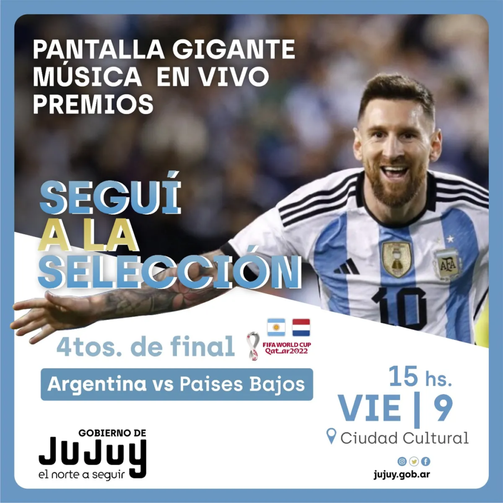 Para este encuentro, y al igual que en la victoria en octavos de final frente a Australia, se montará una pantalla gigante en Ciudad Cultural para poder disfrutar y alentar al seleccionado argentino durante su presentación; también habrá música en vivo con «La Musa cover band», y muchos premios.