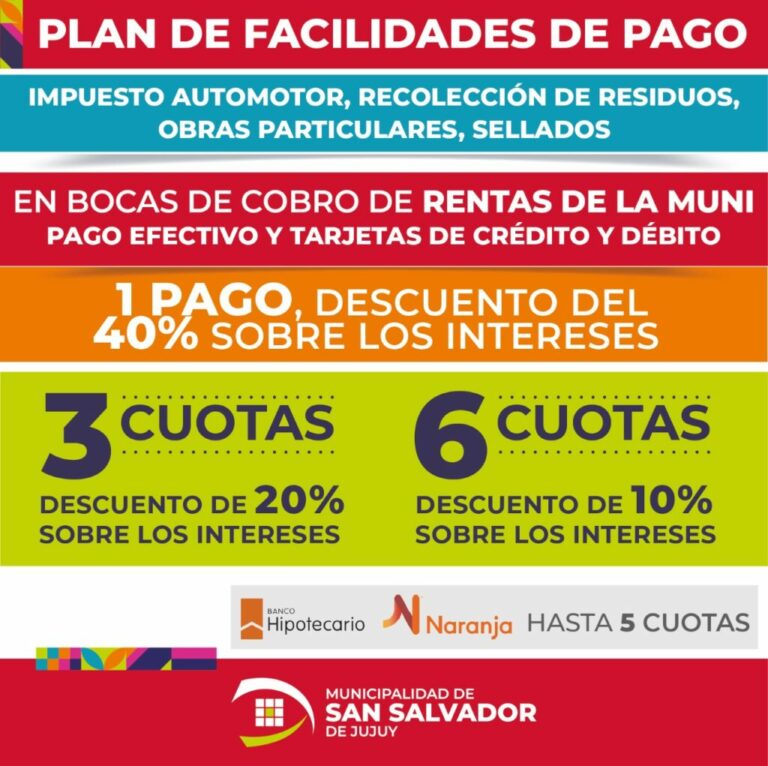 La Dirección General de Rentas de la Municipalidad de San Salvador de Jujuy, invita a los vecinos de la ciudad a aprovechar los beneficios a la hora de abonar los tributos municipales existentes, realizando el pago a través de la página web www.rentasmunijujuy.gob.ar