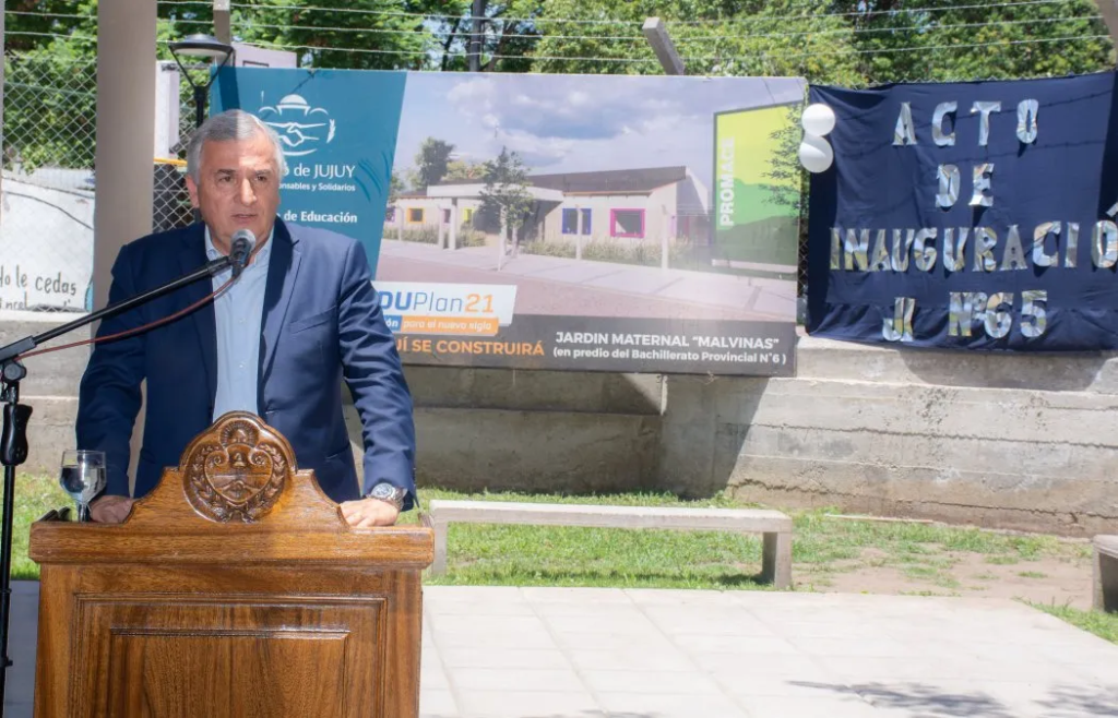 Gerardo Morales encabezó el acto inaugural del jardín maternal del Bachillerato Provincial Nº 6 “Islas Malvinas” ubicado en el barrio homónimo de la capital jujeña, ratificando con hechos concretos el rumbo de una política educativa que procura fortalecer la primera infancia.