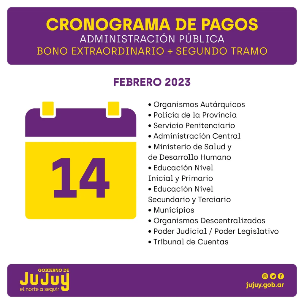 Tesorería de la Provincia confirmó que el 14 de febrero los agentes que prestan servicios en las diferentes áreas de la Administración Pública Provincial percibirán el segundo tramo del bono extraordinario.