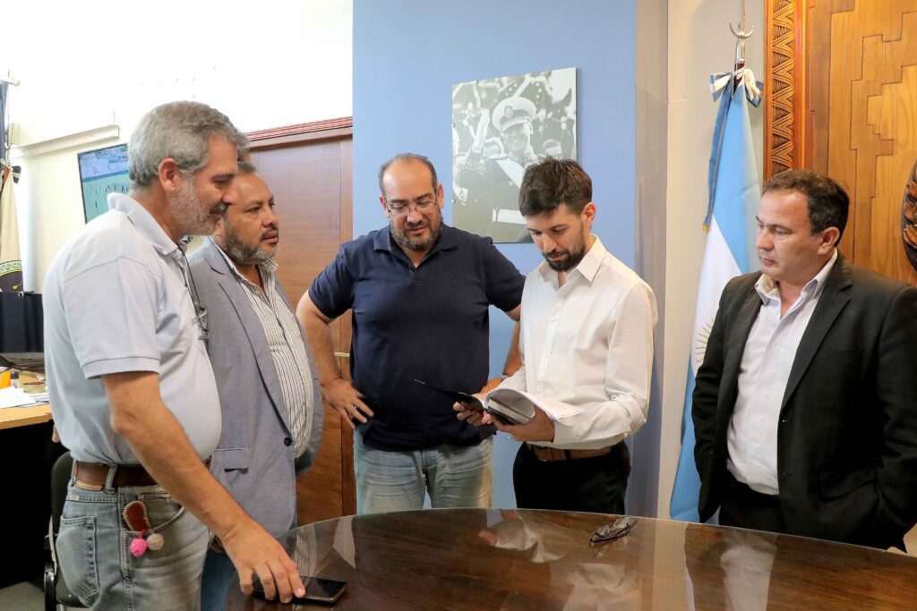 Con el objetivo de brindar mejores y mayores servicios en el transito económico que tiene la provincia de Jujuy hacia la frontera, el jefe de la comuna palpaleña, Rubén Eduardo Rivarola, trabaja en conjunto con diversas instituciones provinciales y nacionales, para ofrecer importantes beneficios a los palpaleños. Es por eso que en el día de hoy tuvo una reunión con el jefe de Gabinete de la Ventanilla Única de Comercio Exterior, del Ministerio de Economía de la Nación, Rodrigo Karasik, Vicente Costa administrador de la empresa Aceros Zapla y Mario Arguello de Aduana.