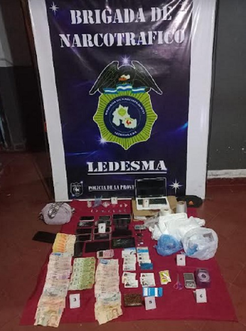 Después de una larga tarea de investigación, y con orden judicial mediante, los efectivos realizaron el procedimiento en una vivienda del barrio Túpac Amaru de la localidad de Calilegua, donde decomisaron envoltorios con estupefacientes, además, se secuestraron trece teléfonos celulares, una computadora portátil, dos tablet, una cámara, pendrives, una balanza de precisión, una balanza de kilogramo, tijeras de corte, documentos varios y el total de once mil ochocientos cuarenta pesos en efectivo.