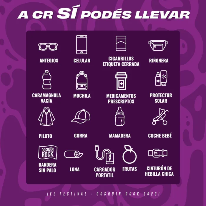Recomendaciones: Cosquín Rock se hace a metros de las sierras y al aire libre. Cuidarse del sol y mantenerse hidratado es muy importante.