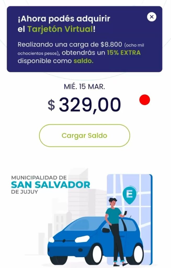 Con el fin de realizar mejoras y cubrir las necesidades de todos los vecinos, en San Salvador de Jujuy se implementará el Tarjetón Virtual en la aplicación Vía Parking, que contará con beneficios para los conductores que estacionan recurrentemente en las calles de la capital jujeña. Quienes compren 110 horas de zona 1, recibirán un crédito del 15 % extra disponible en el saldo al momento de realizar las cargas.