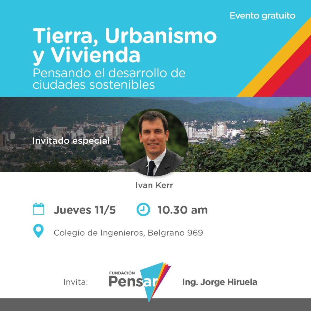 En esta ocasión, Ivan Kerr, ex Secretario de Vivienda de la Nación, a través de su temario “Tierra, Urbanismo y Vivienda, pensando el desarrollo de ciudades sostenibles”, se presentará en el Colegio de Ingenieros (Belgrano 969), este jueves 11 de mayo a las 10.30 hs.