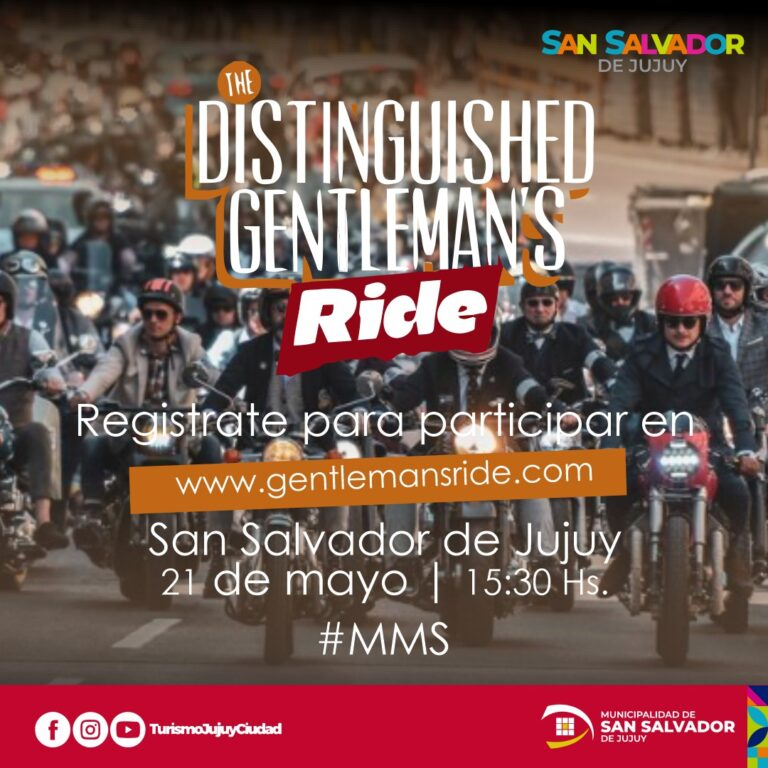 La Municipalidad de San Salvador de Jujuy junto a Club Moto Clásica Positivo Jujuy será parte del segundo encuentro denominado “El Distingued Gentleman´s Ride”,movimiento motocilístico a nivel mundial destinado a recaudar fondos y concientizar sobre temáticas de la salud sobre el cáncer de próstata y suicidio masculino; por tal motivo llaman a los interesados en participar inscribiendose en la página oficial www.gentlemansride.com o del municipio www.sansalvadordejujuy.gob.ar.