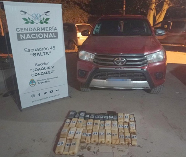 Otros 33 kilos 319 gramos de cocaína fueron hallados en el interior del tanque de combustible de una camioneta. Como resultado de los operativos, tres personas quedaron detenidas.