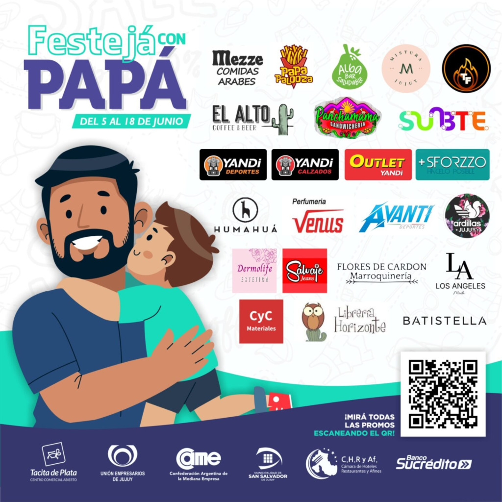 La Municipalidad de San Salvador de Jujuy junto a la Unión Empresarios de Jujuy, a través del Centro Comercial Abierto Tacita de Plata, invitan a los vecinos y vecinas a aprovechar la promociones y descuentos que ofrecen distintos comercios de la ciudad para conmemorar el día del padre..