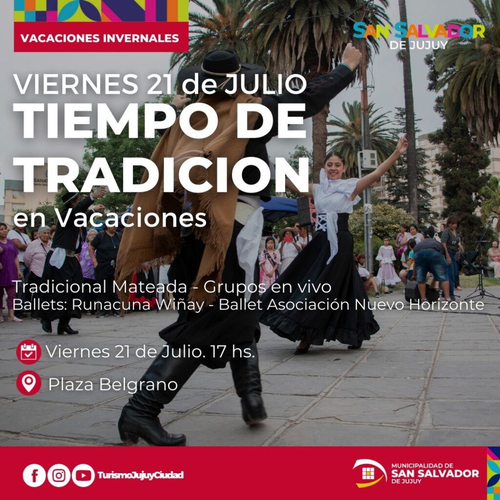 En cuanto a Tiempo de tradición en vacaciones, los asistentes al evento podrán disfrutar el viernes por la tarde de una tradicional mateada y grupos en vivo al ritmo de los ballets Runacuna Wiñay y Asociación Nuevo Horizonte. Para mayor información de las demás actividades y guiados turísticos y conectarse en San Salvador de Jujuy con el arte y la naturaleza, los interesados pueden comunicarse al whatsapp 388- 4694133; 388- 4411891.