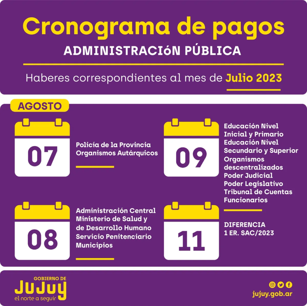 Tesorería de la Provincia dio a conocer el cronograma de pagos, correspondiente al mes de julio del 2023.