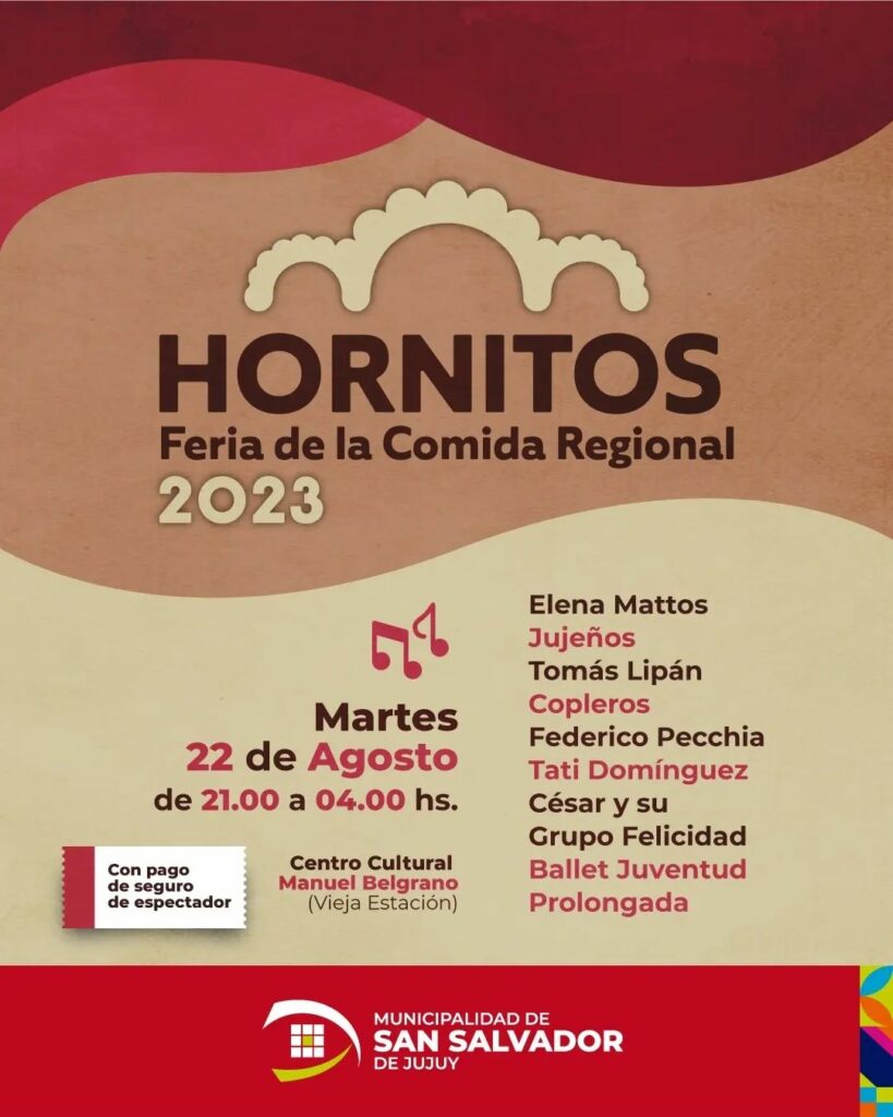 La Dirección de Cultura de la Municipalidad de San Salvador de Jujuy anunció la habilitación de un punto de venta anticipada de Seguros de Espectador para espectáculos nocturnos que se llevarán a cabo los días 20 y 22 de agosto como parte de Los Hornitos.