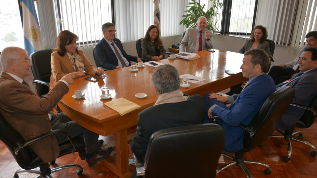La reunión tuvo lugar hoy, 12 de septiembre, participando los jueces y las juezas de la máxima instancia judicial de la provincia Dres. Federico Otaola – presidente-, María Silvia Bernal, Laura Lamas González, Mariano Miranda, María Eugenia Nieva y Martín Llamas; el Dr. Sabelli, y las autoridades del Colegio de Magistrados y Funcionarios encabezadas por su presidente Dr. Alejandro Domínguez, y los Dres. Daniel Alsina y Marcelo Ibáñez.