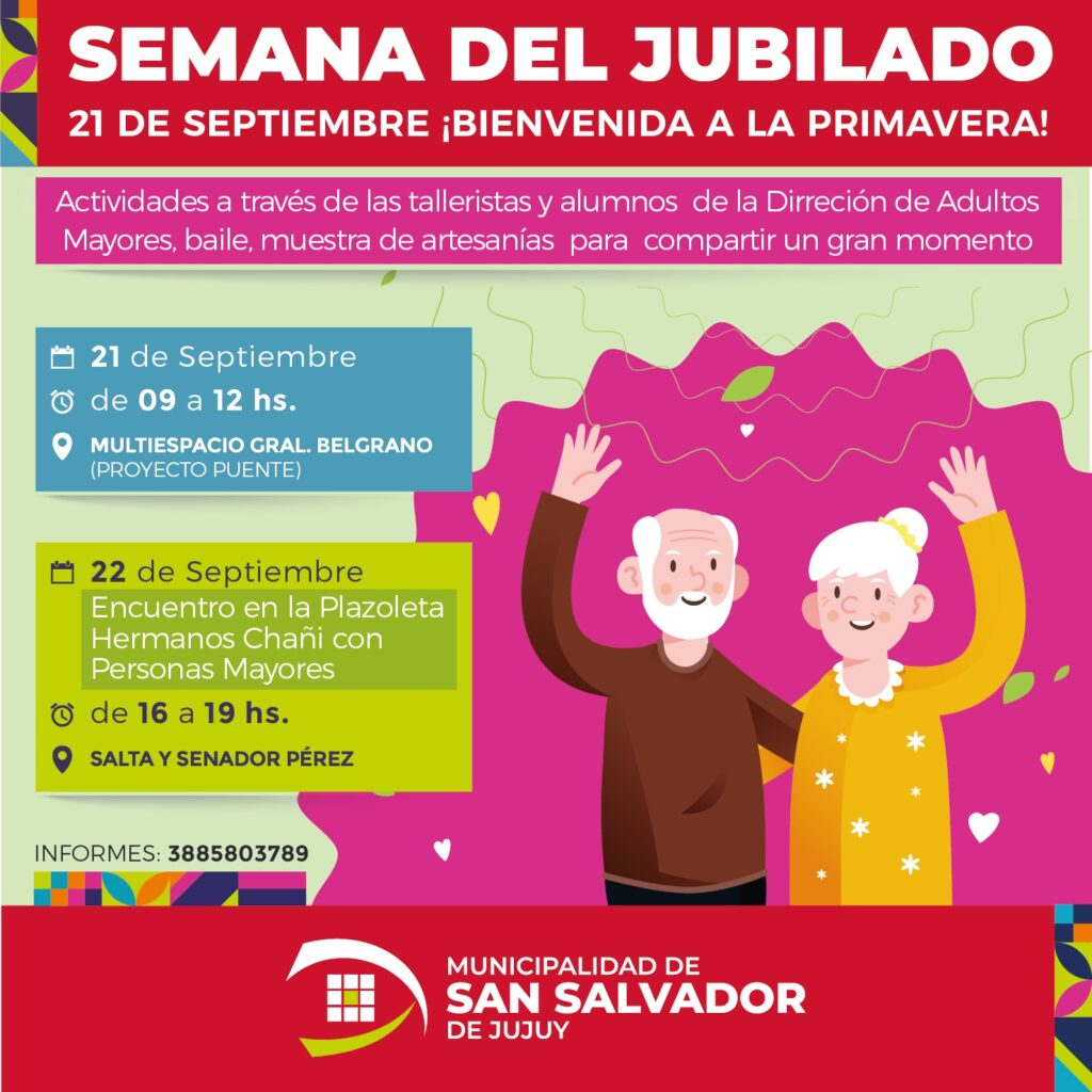 Para obtener más información sobre la Semana del Jubilado y las actividades programadas, los interesados pueden comunicarse al teléfono 3885803789.