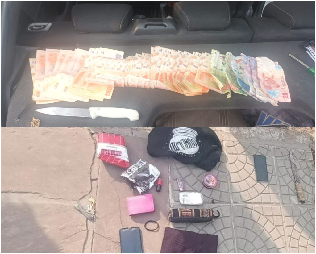 El domingo, efectivos del Comando de Seguridad (Motorizado) de la Unidad Regional Uno, tras persecución detuvieron a dos masculinos de 23 y 37 años, así también a una mujer de 22 años, quiénes con un arma blanca y amenazas, robaron un bolso con varios elementos y dinero en efectivo a la víctima, en un sector del barrio San Pedrito. Además personal policial recuperó las pertenencias sustraídas.