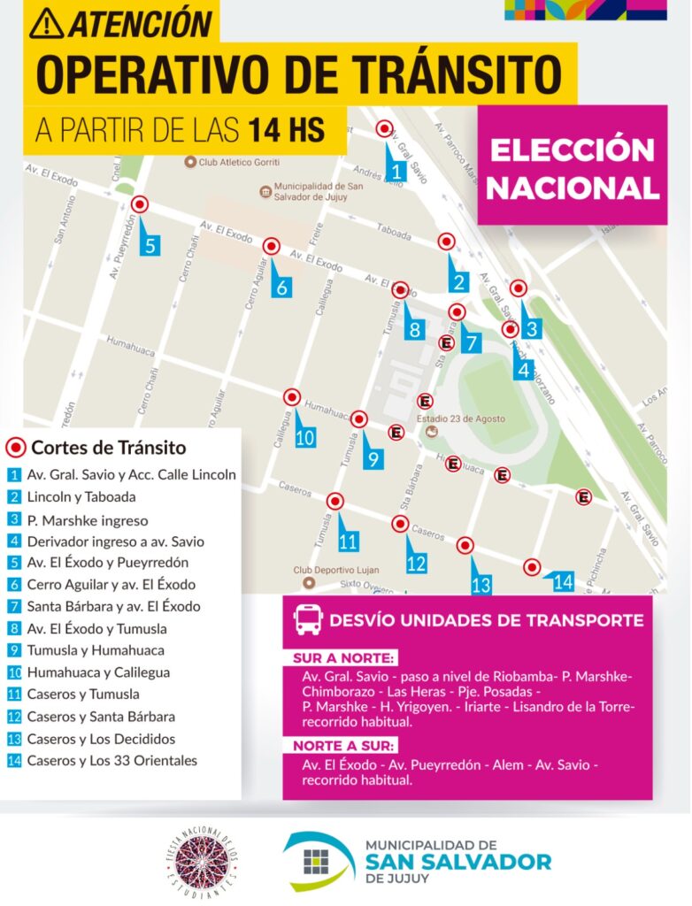 La Dirección de Tránsito y Transporte de la Municipalidad de San Salvador de Jujuy, dependiente de la Secretaría de Servicios Públicos, informó el operativo de tránsito dispuesto con motivo de realziarse Elección Representante Nacional de los Estudiante el viernes 29 de septiembre en el estadio “23 de Agosto” a las 21:00 horas.