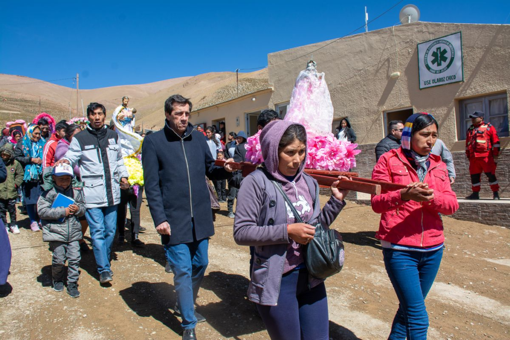 El ministro de Hacienda y Finanzas y gobernador electo de la Provincia, Carlos Sadir, visitó la comunidad de Olaroz Chico, Departamento Susques, a fin de encabezar los actos en honor a la Virgen del Rosario, patrona de la localidad minera, ubicada en la Puna jujeña a más de 3500 metros sobre el nivel del mar.