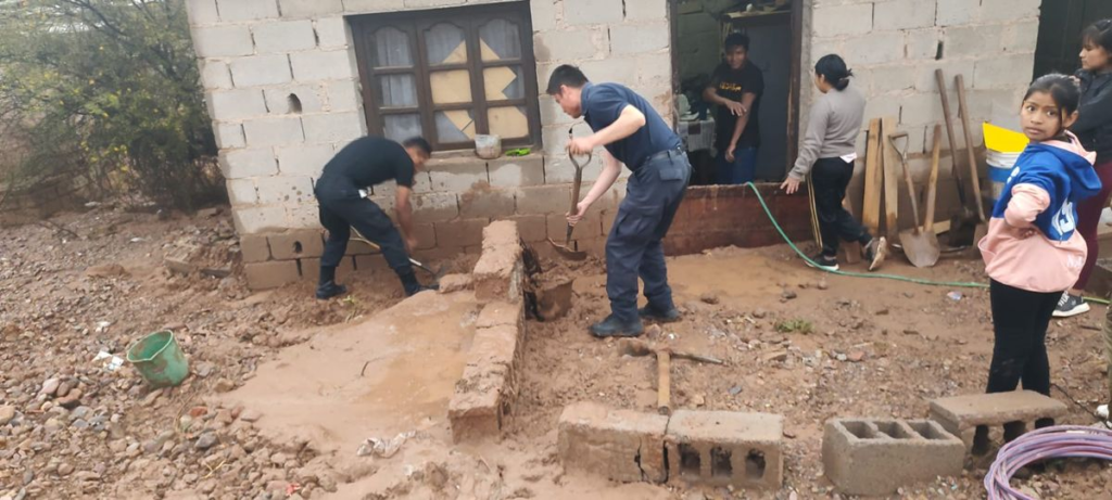 Por otra parte, la División Enlace Comunitario de la Policía de la Provincia colaboró con familias del barrio 23 de Agosto de Humahuaca, las que resultaron damnificadas por las intensas precipitaciones.