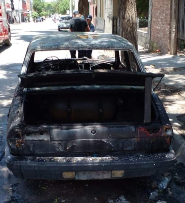 Rápidamente al presentarse en el lugar los efectivos policiales, constataron que un vehículo marca Peugeot modelo 504, se estaba incendiando en la parte interior. Inmediatamente personal de Bomberos procedió a sofocar el incendio, evitando que se propague, solo se registraron daños materiales.