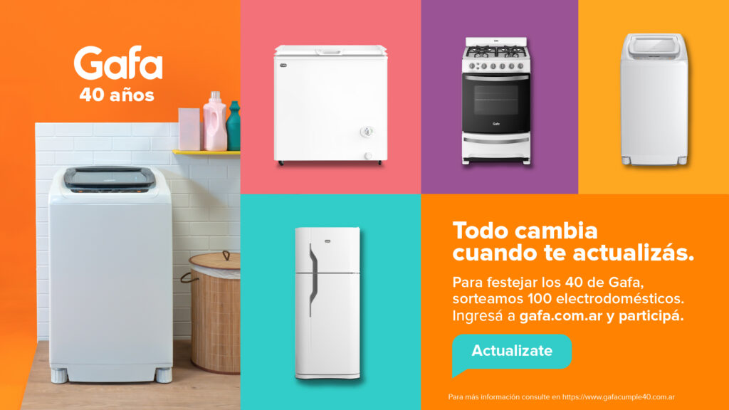 En el marco de su 40 aniversario, la marca GAFA ha lanzado una campaña creativa bajo el lema «Todo cambia cuando te actualizás» y la acompaña con el sorteo más grande de su historia, regalando a sus clientes y potenciales clientes, 25 heladeras, 25 freezers, 25 lavarropas y 25 cocinas.  El sorteo aplica para la Provincia de Buenos Aires,  Capital Federal y la provincia de Santa Fe.