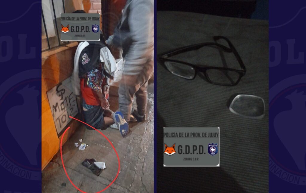 Este sujeto, conocido en el ámbito delictual, fue divisado por el Sistema de Monitoreo 911 escaparse por las escaleras del Hospital Néstor Sequeiros luego de haber lastimado en la zona del rostro al damnificado (provocándole daños en sus anteojos), de manera que la unidad realizó recorrido por el lugar, logrando atraparlo por Pasaje Molle del barrio Cuyaya, siendo inmediatamente derivado a la sede policial.